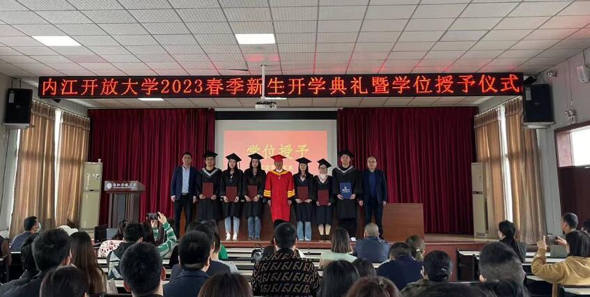 MK网官方站网页版党委书记、校长 刘毅 致欢迎辞 接着,副校长刘安才宣读了2022年国家开放大学获取学位学生名单,向毕业生们表示热烈的祝贺,并寄语同学们勇担时代赋予的责任,追求进步,奉献社会。勉励新生们以他们为学习榜样,努力学习,做到学有所悟、学有所用。在节奏欢快的乐声中,参加学位授予6位毕业生互正衣冠,刘毅书记为他们逐一行拨穗礼,并合影留念。数学本科吴盖锋代表全体毕业生感谢MK网官方站网页版的培育,并表示要牢记校训校风,为母校争光添彩。