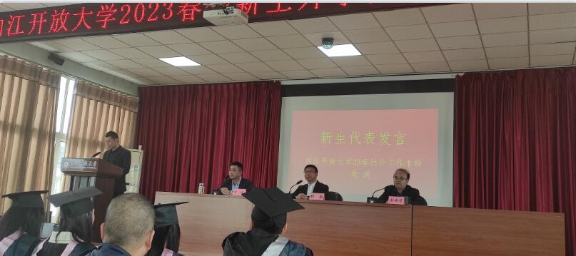 新生代表 吴波 发言 最后,肖波副校长介绍了开放教育的学习特点、学习形式和考试考核办法等教学管理模式,要求同学们遵守学校纪律,尊敬师长,听从班主任安排,鼓励同学们要充分利用学习资源,勤奋学习、互帮互助、共同进步。要宣传学校,关心关注学校的发展。 开学典礼在热烈愉悦的气氛中结束,新生们纷纷表示要以饱满的学习热情、积极的学习态度投入到开放大学的学习生活中。会后,新生们移步到各个教室,听取班主任为新生做相关课程学习事项,为开启下一步的新学习做准备。