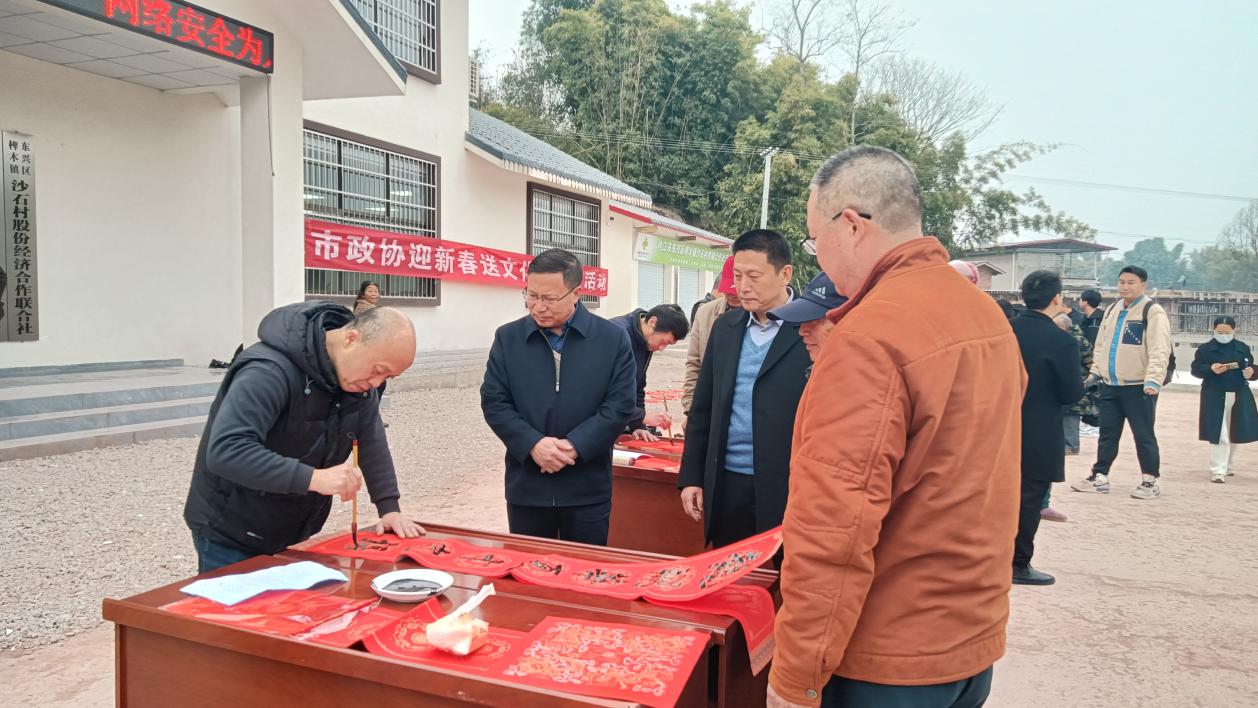 当天,在椑木镇砂石村党群服务中心,多位内江知名书法家挥毫泼墨,为村民写春联、写“福”字,送吉祥。