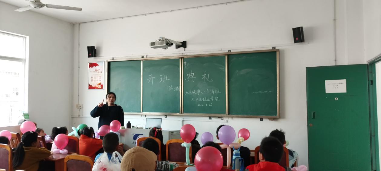 开班仪式上,东兴区社区学院项目团队负责人周俊老师详细介绍了本学期的课程安排。活动既有丰富多彩的课堂主题教学,也有课外社会实践,内容丰富多彩,益智健身。