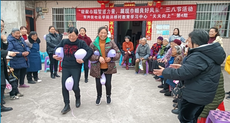 3月28日,东兴区社区学院和椑木镇社区学校在椑木镇洪桥村联合开展趣味活动。益智、健身、获奖品,村民开心快乐,收获满满幸福感。