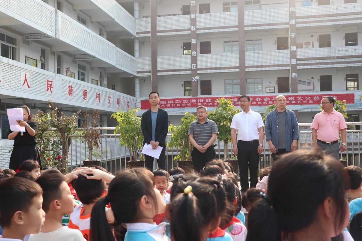 4月15日,内江市围棋协会、东兴区社区学院、椑木镇中心学校联合举办“棋艺进乡村进校园”公益活动暨“蓉关棋艺学堂”开班仪式。内江社区大学、东兴区社区学院、椑木镇党委相关负责人和椑木中心学校师生共1300余人参加活动启动仪。 活动现场 仪式在椑木镇中心学校举行。 椑木镇相关负责人致辞,解读了“围棋进乡村进校园”的目的、意义、计划、模式,联动及资源共享。希望同学们能从执棋中感悟到人生美好,从对弈中表现出对决智慧,从胜败中体会到从容坦荡,从学棋中历练出坚持本义。相信椑木“小棋手”们棋艺学有所成,同时也相信围棋也会成为椑木中心学校培养综合高素质人才的重要抓手。 椑木镇中心校负责人表示,感谢围棋走进乡村,扎根泥土,让农村娃在学习围棋中获得快乐,感悟围棋格局,掌握益智、修性传统文化体育技能,承诺为今后的围棋活动提供有力保障。