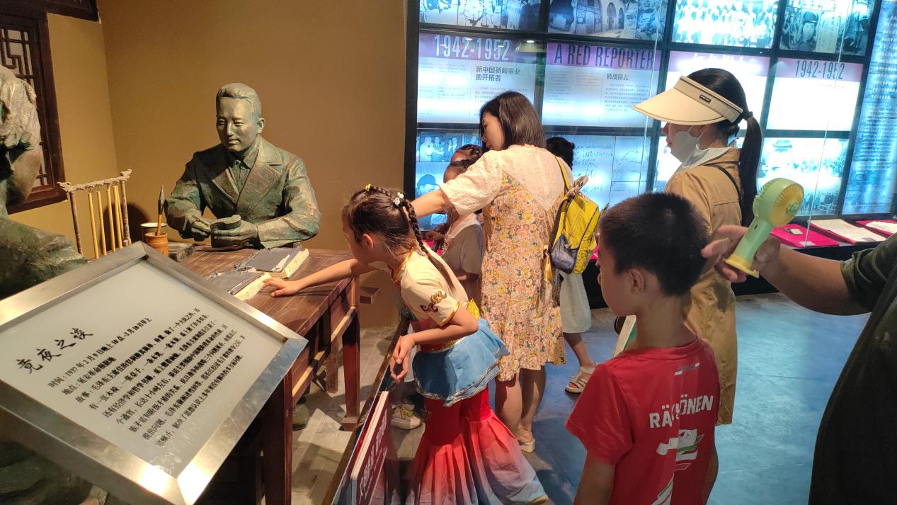 在范长江纪念馆内,小主持们在老师的引导下,认真聆听讲解员讲述红色故事,观看珍贵的历史照片和文物。小主持们不断记录,了解资料,将革命先辈的红色记忆扎根心中。