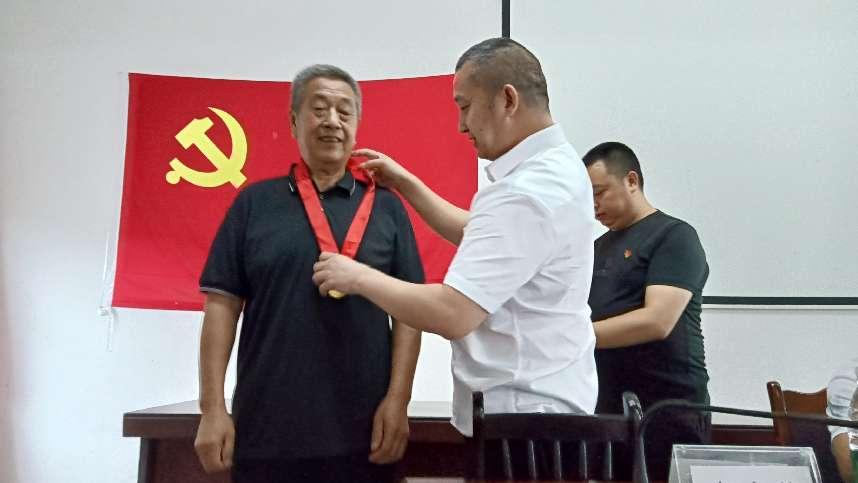 活动现场 活动在庄严的国歌声拉开帷幕。黄棚社区党委书记朱利为73岁的曾会明等老党员佩戴“光荣在党50年”纪念章,青年党员代表献上鲜花。朱利分享了曾会明“光荣在党50年”的先进事迹,他一心为公,50年来坚持为群众办实事,做好事,为集体谋利益,深受当地群众喜欢,备受社会各界点赞。 曾会明抚摸着金灿灿的纪念章,感触良多:“这枚纪念章是党对一名老同志的关怀,我要永远感党恩、听党话、跟党走,把党的优良传统传给年轻人!”