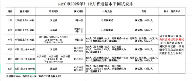 2025年9月内江市普通话培训测试时间及内容安排