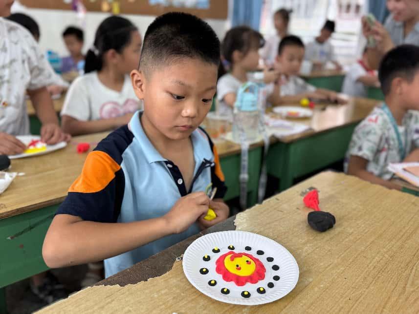 手工活动环节,爱心志愿者详细演示了安全主题粘土作品的制作流程。大家先绘出花朵造型,粘贴上喜欢的色彩,再在花边添加叶片装饰,同时将安全标识元素融入其中,让作品兼具美观与教育意义。
