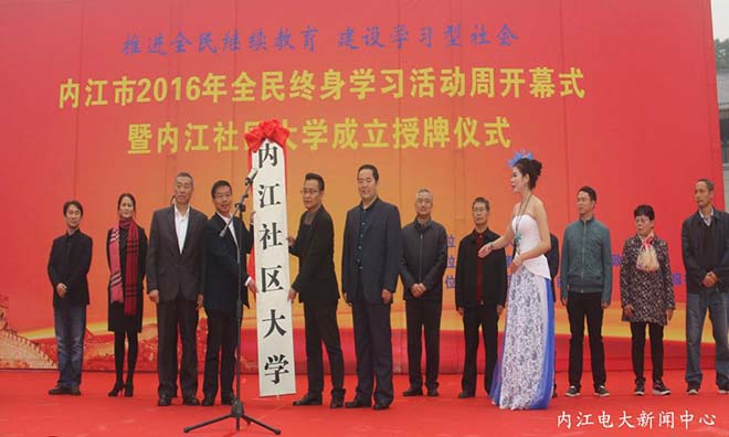 内江市委常委、副市长陈建有,四川电大党委书记、校长罗大玉为内江社区大学成立授牌。